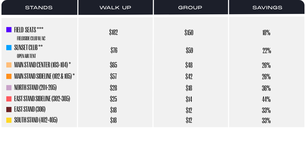Looking for some shade on game day? The Sunset Club is the place to be. Tickets include food and non-alcoholic beverages, with space to accommodate up to 75 guests each game.