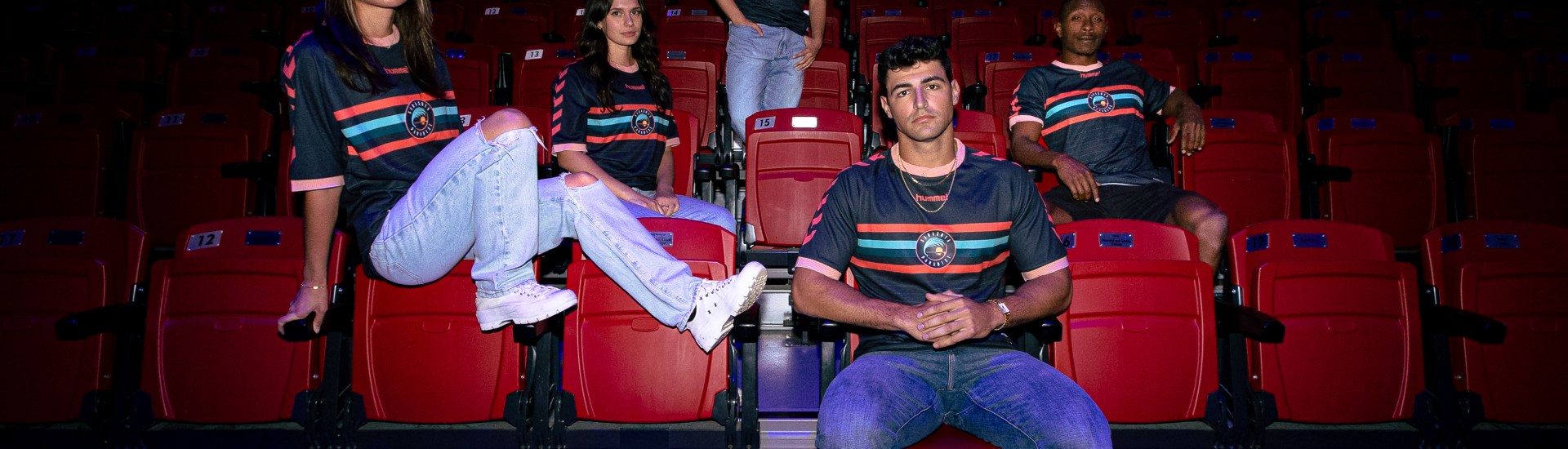 The 2026 Primary Jersey was engineered with intention in every detail and built to perform under the demands of the professional game, constructed using Hummel Pro honeycomb fabric, the brand’s top-tier performance material. In recognition of the club’s first professional season and national arrival, the Gulf Midnight base incorporates alternating pinstripes running the length of the shirt, a modern interpretation of the club’s signature Paradise Stripe motif. Repeating chevrons cascade down each shoulder in Sunset, complemented by retro striping that reflects motion, rhythm, and performance. A custom vertically knit crossover collar and cuff introduce a premium silhouette rooted in classic football culture.